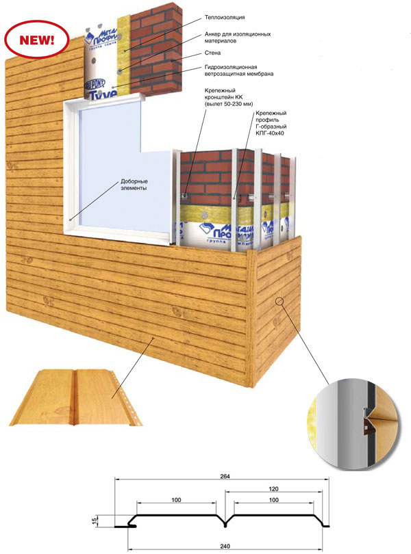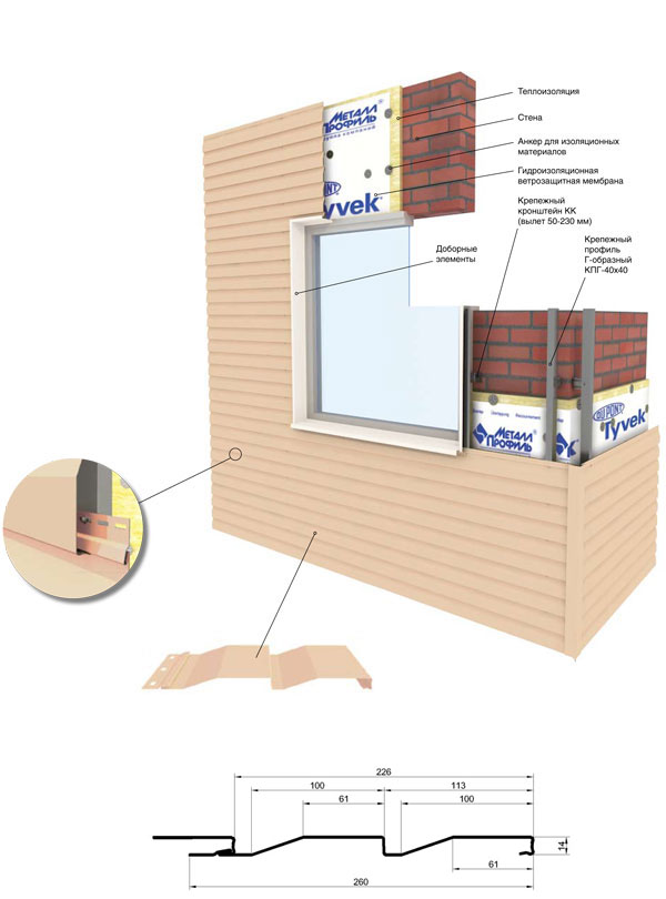 Сайдинг «Корабельная доска» - классический наиболее популярный профиль сайдинга. Благодаря своей форме этот вид профнастила прост в монтаже и удобен в эксплуатации. Чаще всего используется для горизонтальной обшивки стен. Панели сайдинга герметично стыкуются, обеспечивая прочную, долговечную и эстетичную поверхность облицовки. Стальной сайдинг, в отличие от винилового, надежно выдерживает механические нагрузки, не выгорает, негорюч и экологически безопасен. Сайдинг «Корабельная доска» изготавливается любой длины до 6 м из металла толщиною 0.4-0.5 мм. Система монтируется на облегченную вертикальную подконструкцию.