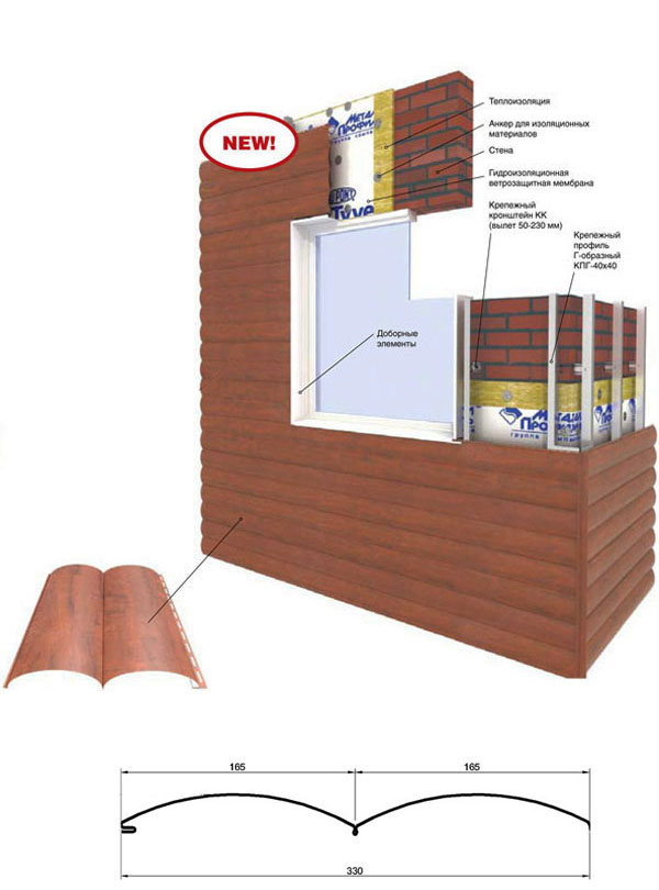 На этом сайдинге есть канавка напоминающая формой знаменитую вершину, а буква «L» означает Light, акцентируя преимущество стальной копии бруса относительно деревянного аналога по простоте монтажа и массе. Используется в качестве облицовки стен (в горизонтальной и вертикальной ориентации) и подшивки карнизов здании при сооружении кровли. В исполнении из металла с покрытием Ecosteel отлично имитирует клееный деревянный брус 120 мм. Устанавливается как любой сайдинг с применением типовых саморезов.